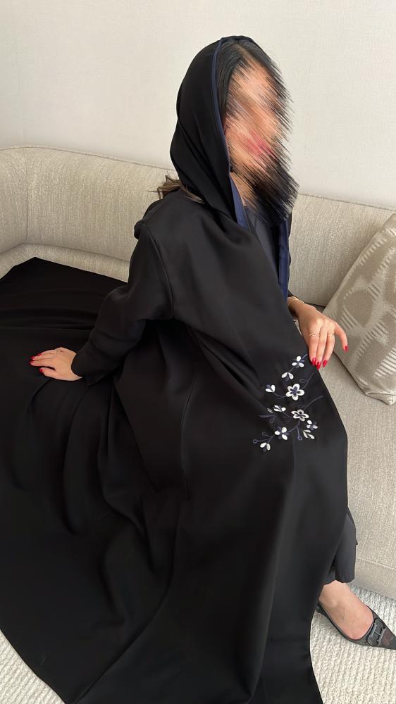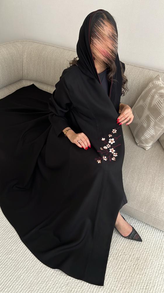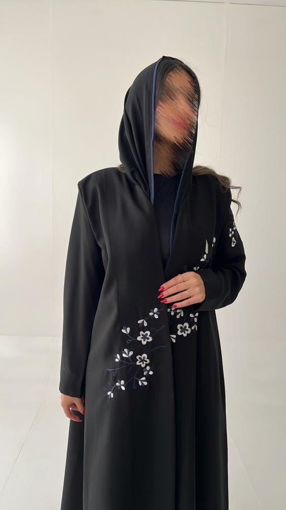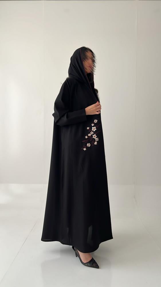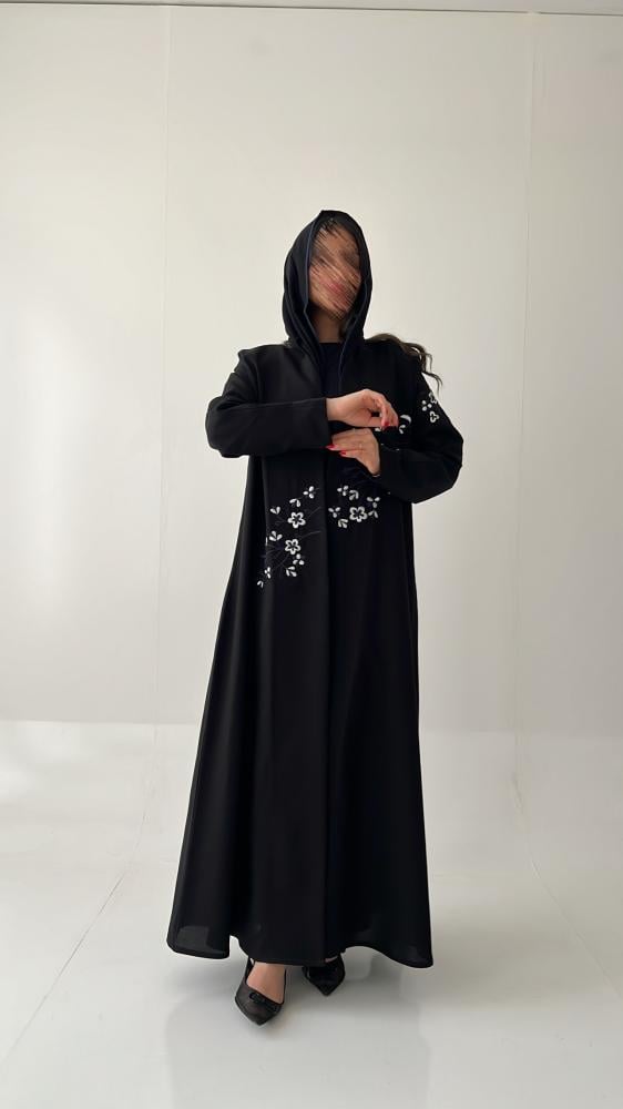عباية قماش كريب كتان قصة رسمية / ربع كلوش بتطريز في الأمام