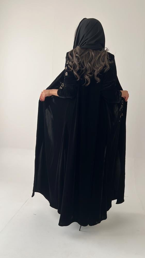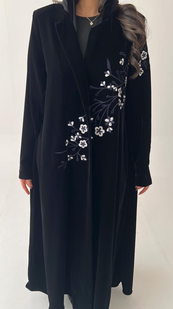 عباية قماش مخمل كوري / قصة نص كلوش بتطريز في الأمام