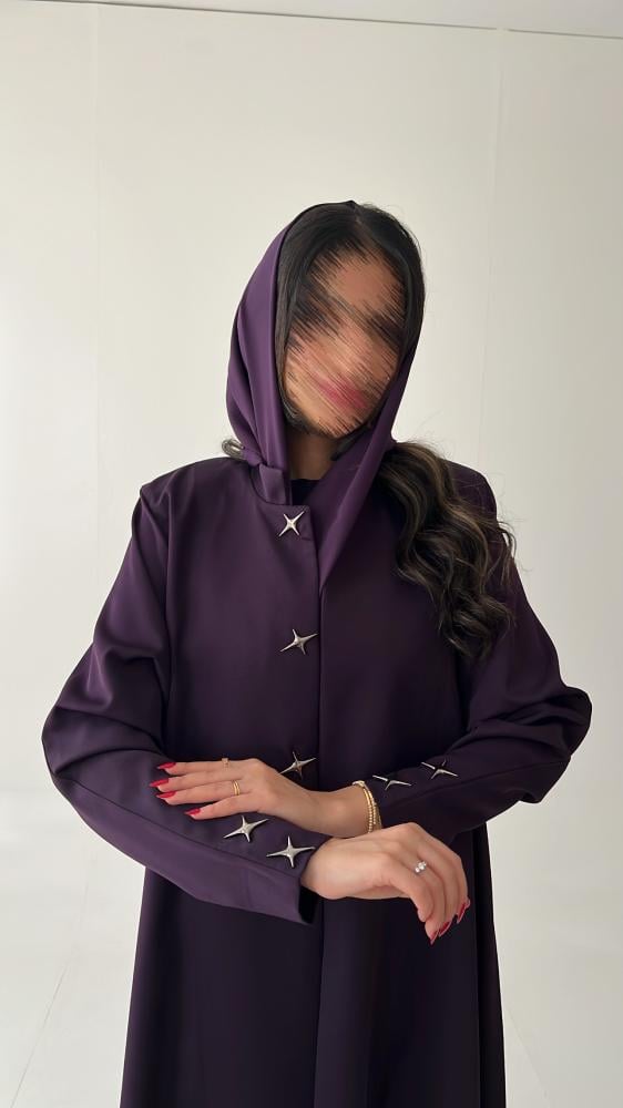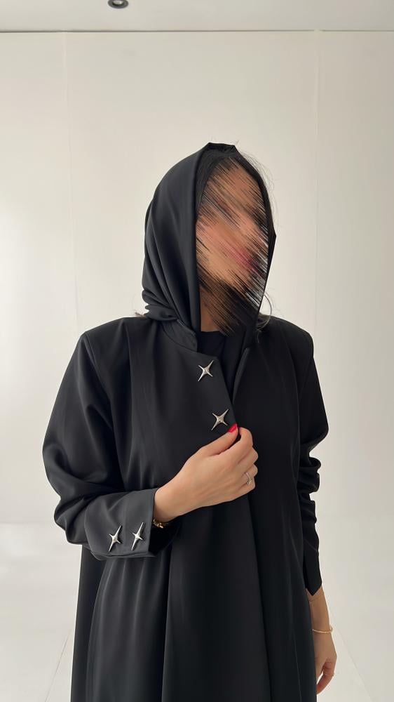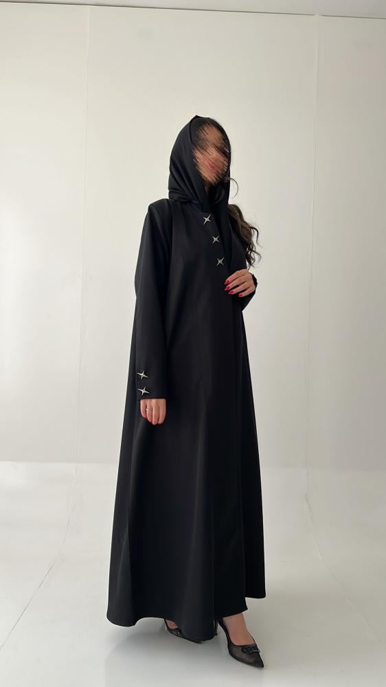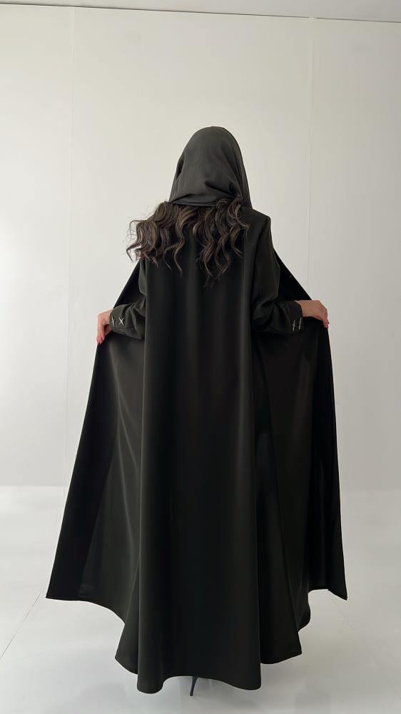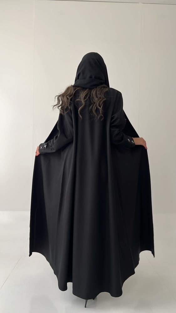 عباية قصة رسمية ( بلايزر ) قماش كريب بأكسسوار ديكور من الأمام والأكمام